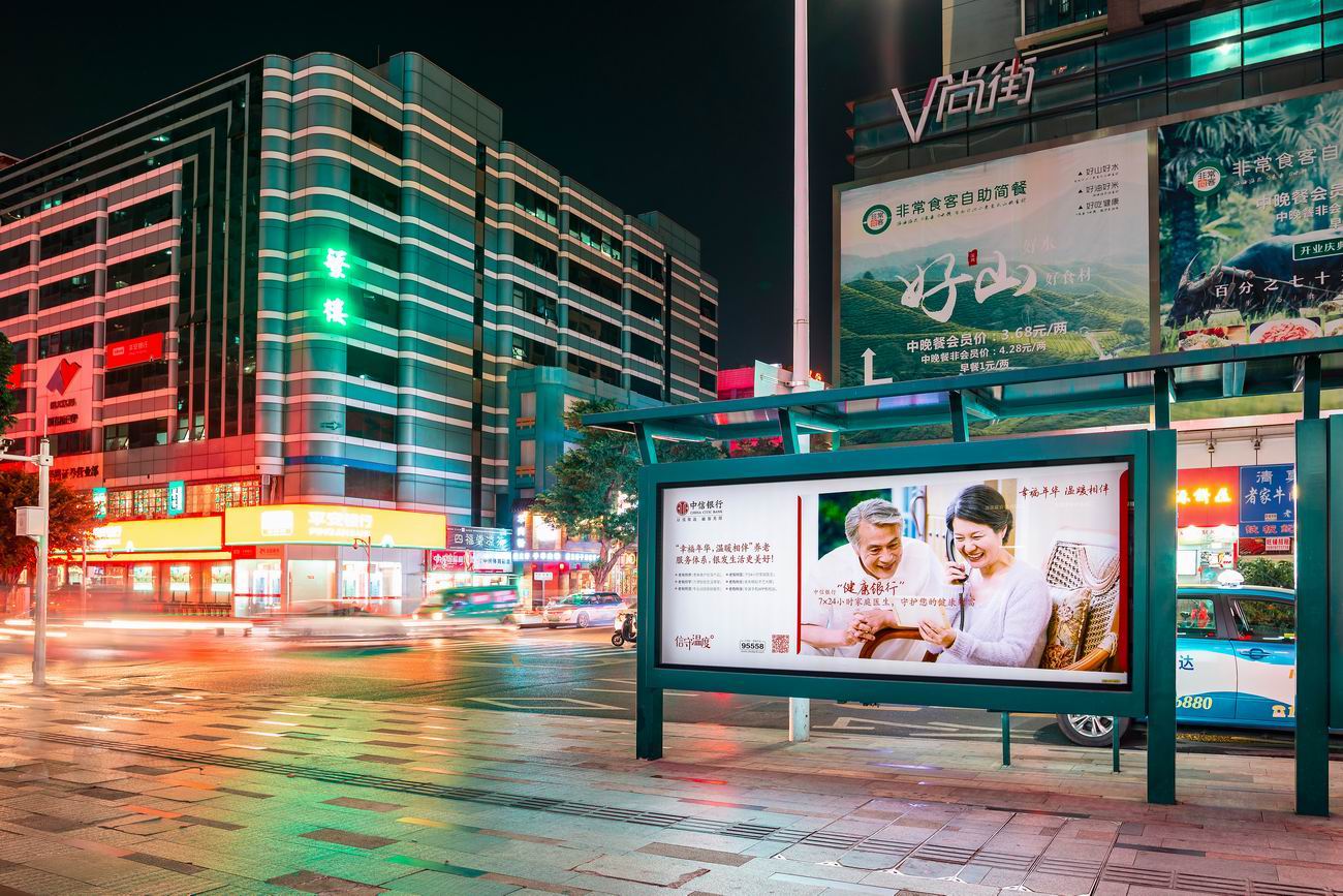 公交站台广告区别于其他户外媒体,在白天有效宣传之余,夜间照明良好,又大大增加了广告宣传效果,并且公交候车亭是静态平面独占展现,曝光时间长,影响受众群体多。